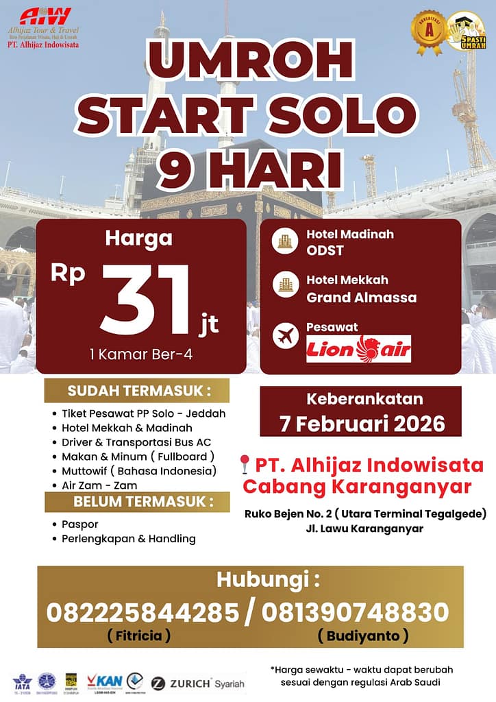 Jazakumullahu khairan buat team Alhijaz Tour yang telah memfasilitasi kami. Alhamdulillah Umroh di Alhijaz Tour diberikan kelancaran, proses pendaftaran dan surat lancar, handling koper baik jamaah kami menginap nunggu atau drop di depan kamar, hotel nyaman dan dek dekat dengan Masjid Nabawi dan Masjidil Haram, makanan alhamdulillah enak dan banyak. “Umroh di Alhijaz Tour Makan Nyaman, Tidur Nyaman Tenang Ibadah